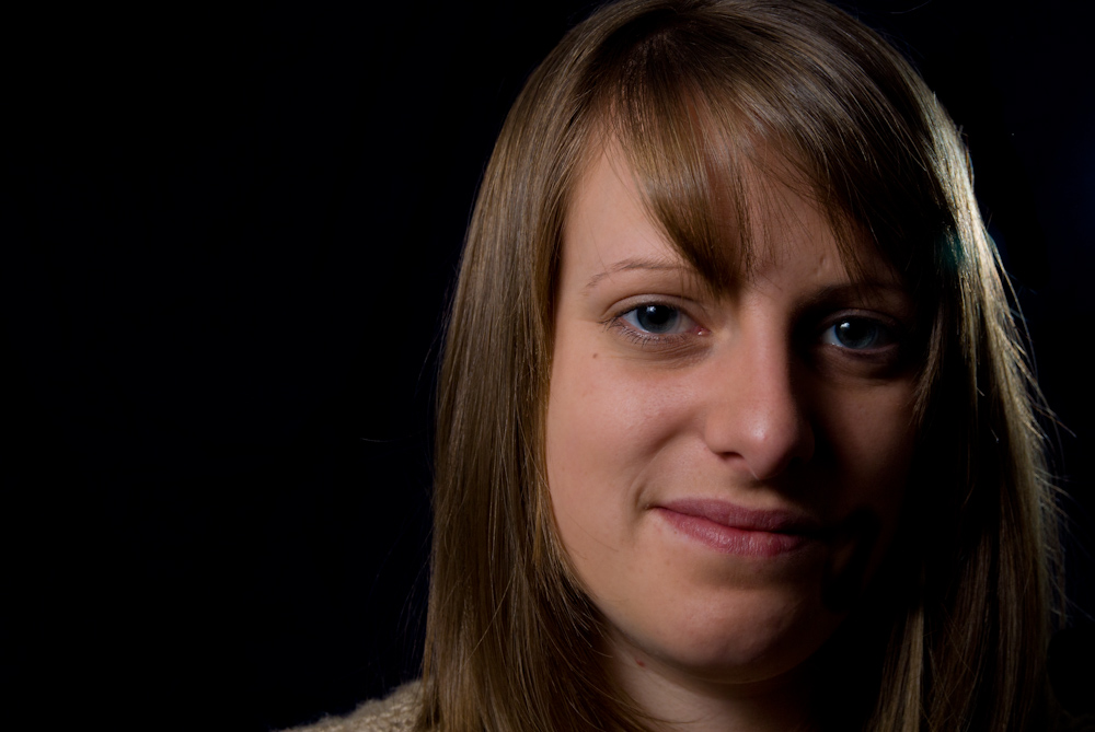The last one I used one light with a grid spot. I put the light so it lit the one side of the models face, and cast a shadow of the model inside a spot of light. This took a bit of playing around as I wanted the shadow a similar size to the models head.